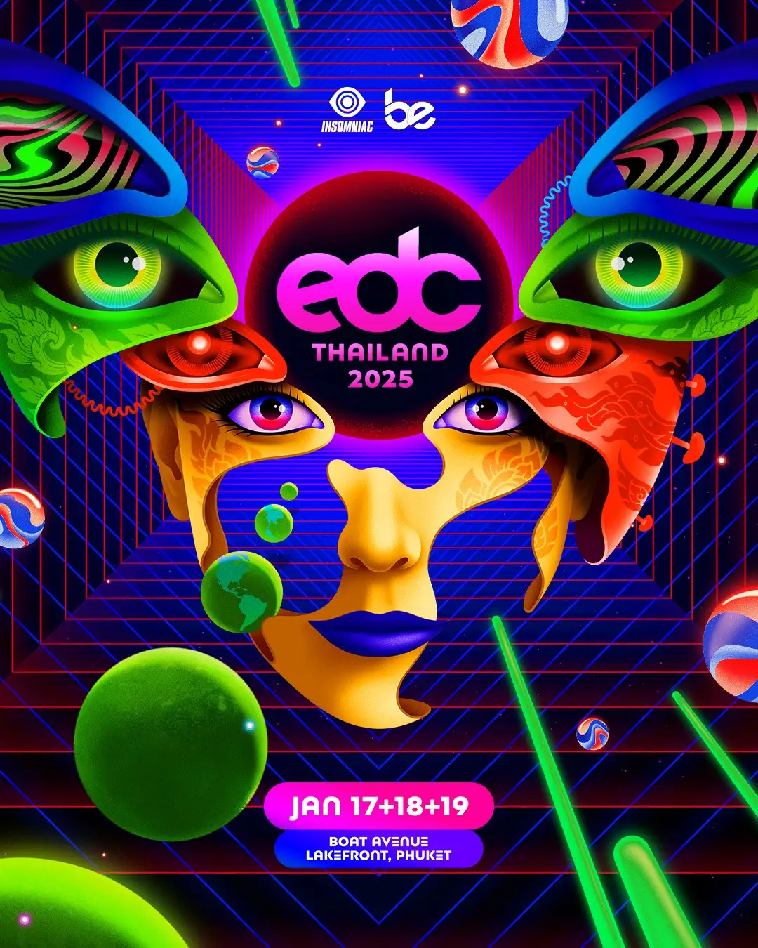 Dưới sự quản lý của Insomniac Events, EDC Thái Lan sẽ diễn ra vào ngày 17-19 tháng 1 tại khu vực Boat Avenue Lakefront ở Phuket, miền Nam Thái Lan.